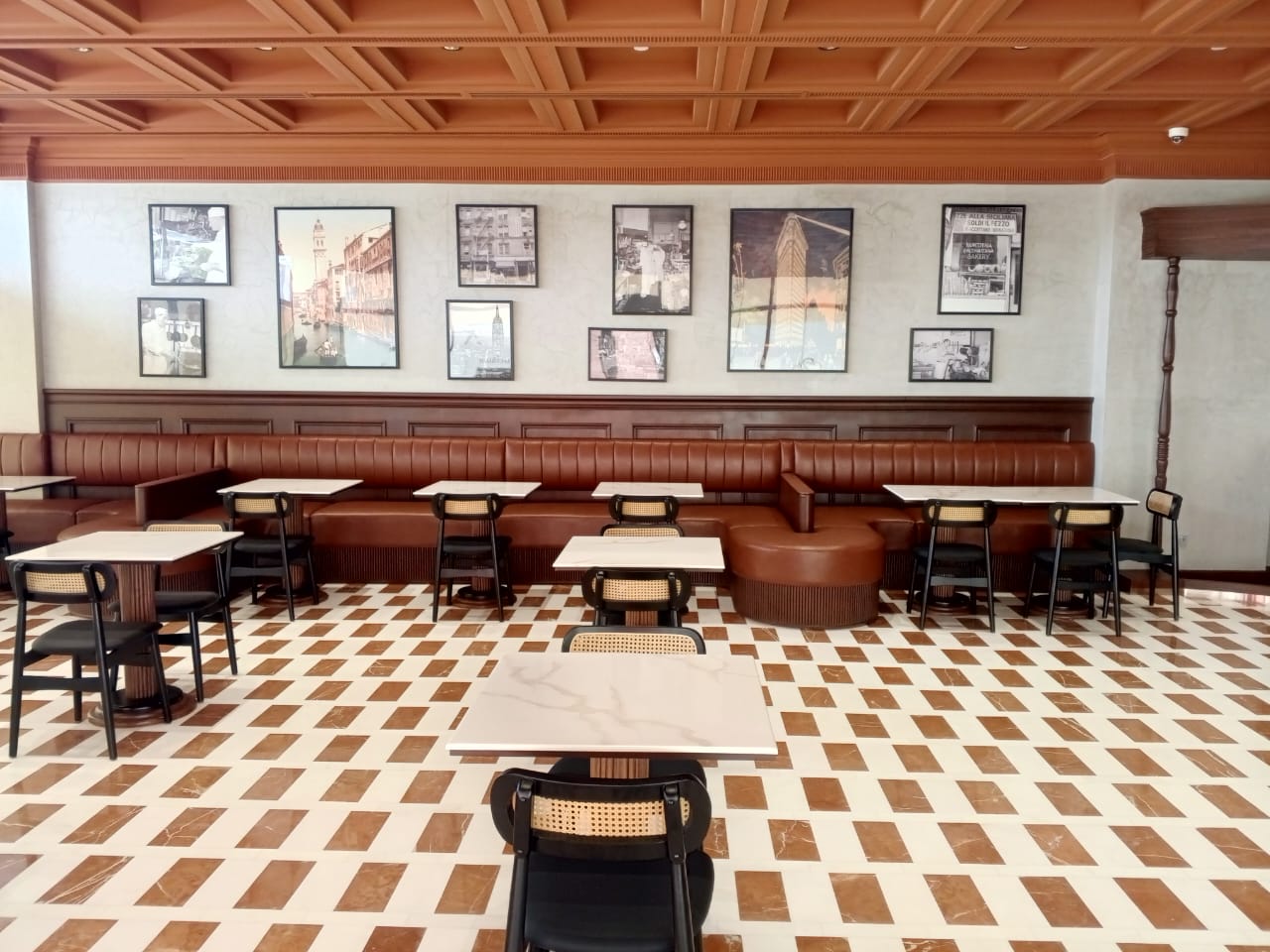 تنفيذ أعمال التصميم الداخلي والديكور لمطعم بأسلوب عصري يجمع بين الجاذبية البصرية والوظيفة العملية، م...
