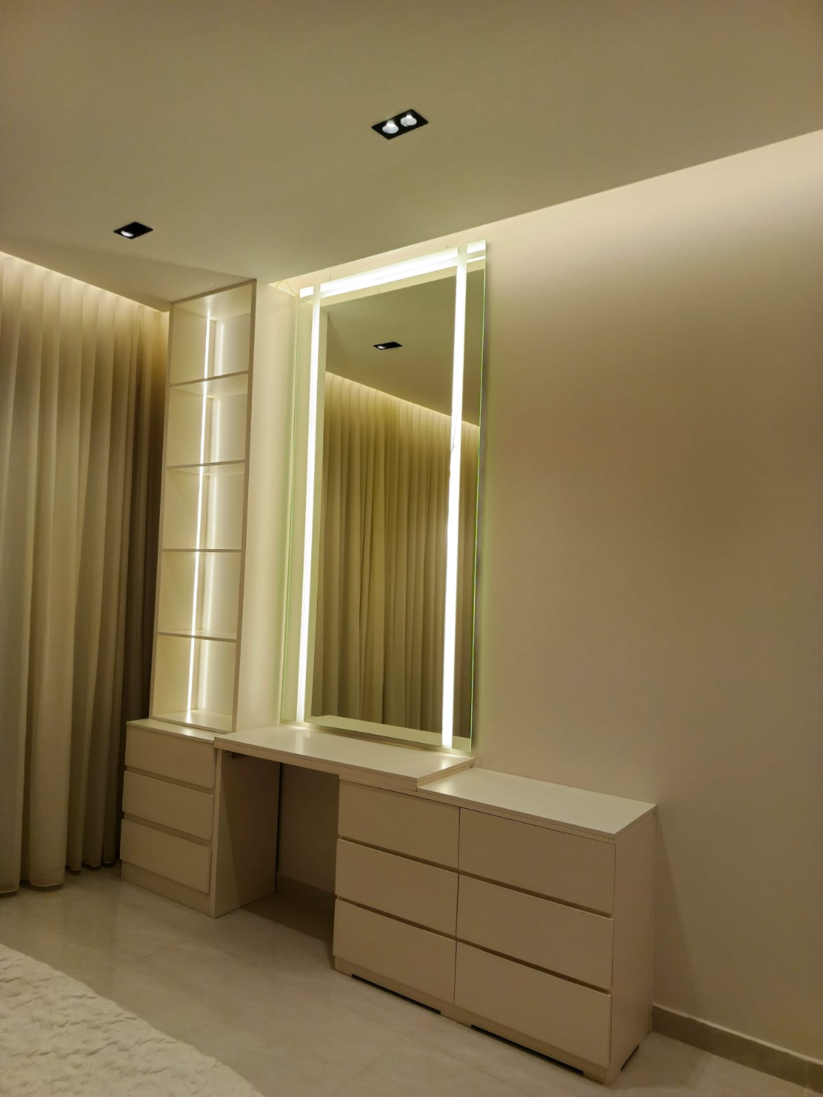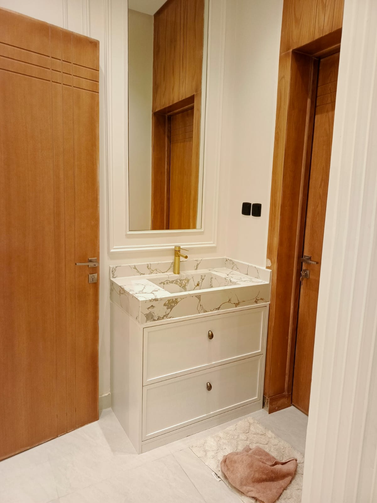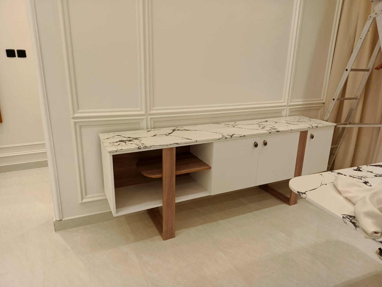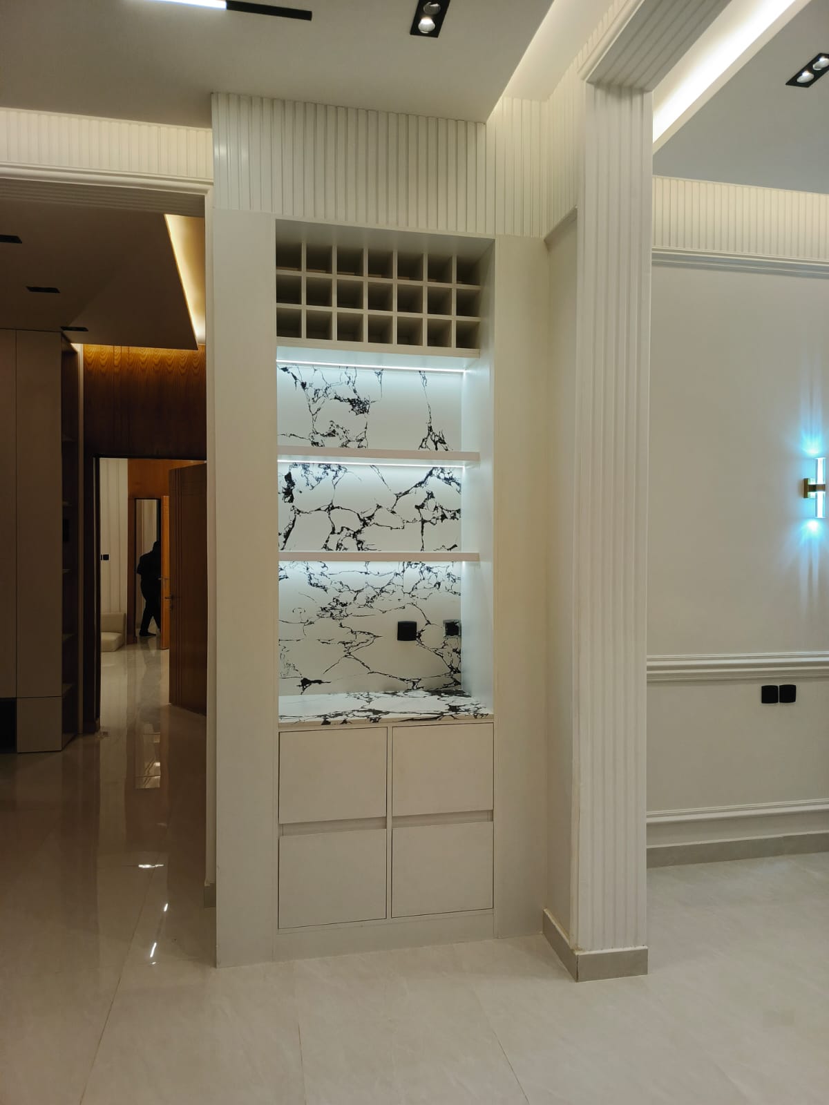 تنفيذ أعمال التشطيب والديكور الداخلي لشقة سكنية بأسلوب عصري راقٍ، مع اختيار الألوان والخامات بعناية لتوفير بيئة مريحة وأنيقة تعكس ذوق ساكنيها.