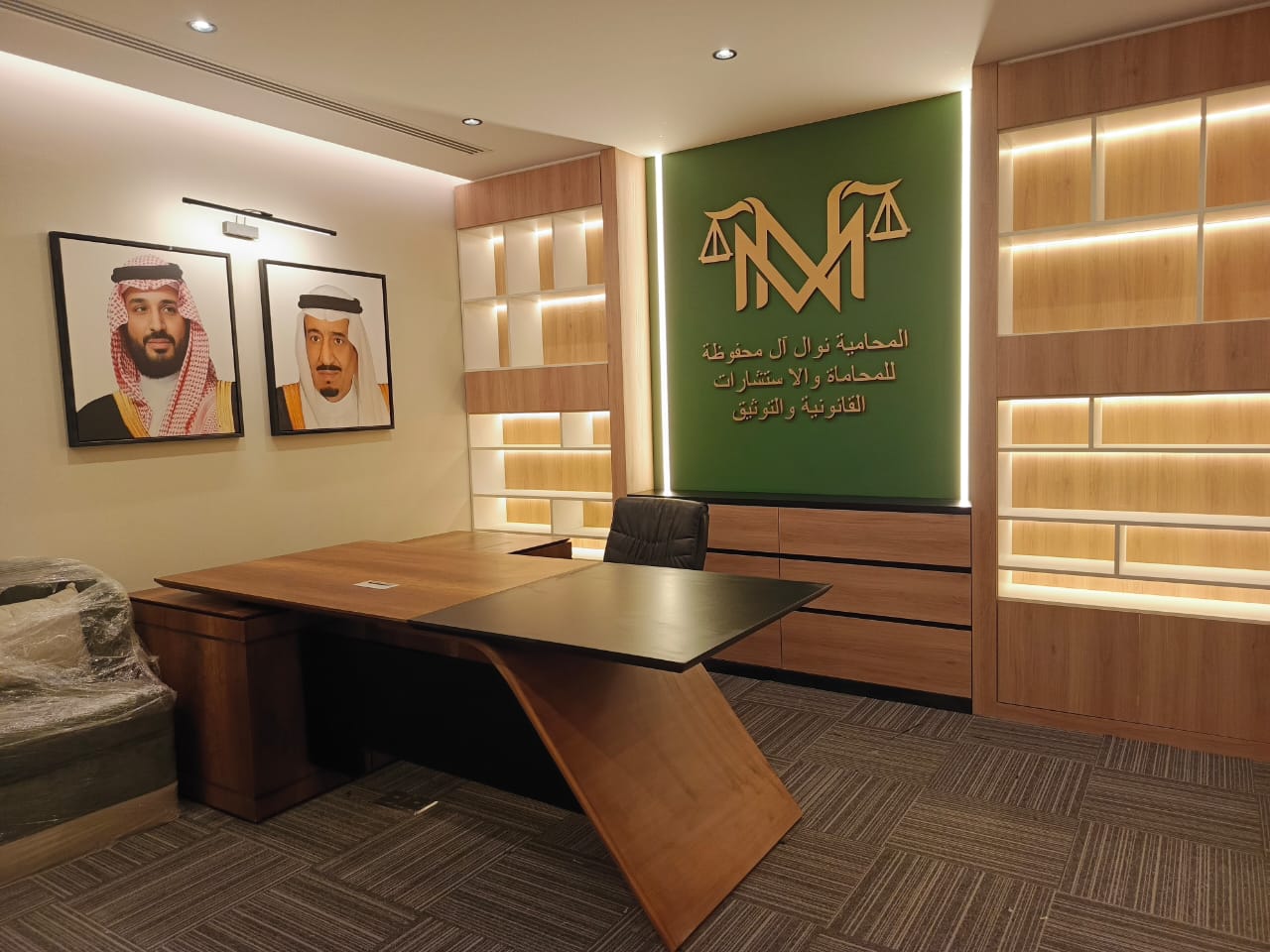 تنفيذ أعمال التصميم الداخلي والتشطيبات لمكتب محاماة بأسلوب عصري راقٍ يعكس الطابع الرسمي والمهني للمكان، مع التركيز على جودة الخامات، توزيع الإضاءة، واستغلال المساحات بما يحقق الراحة والخصوصية.